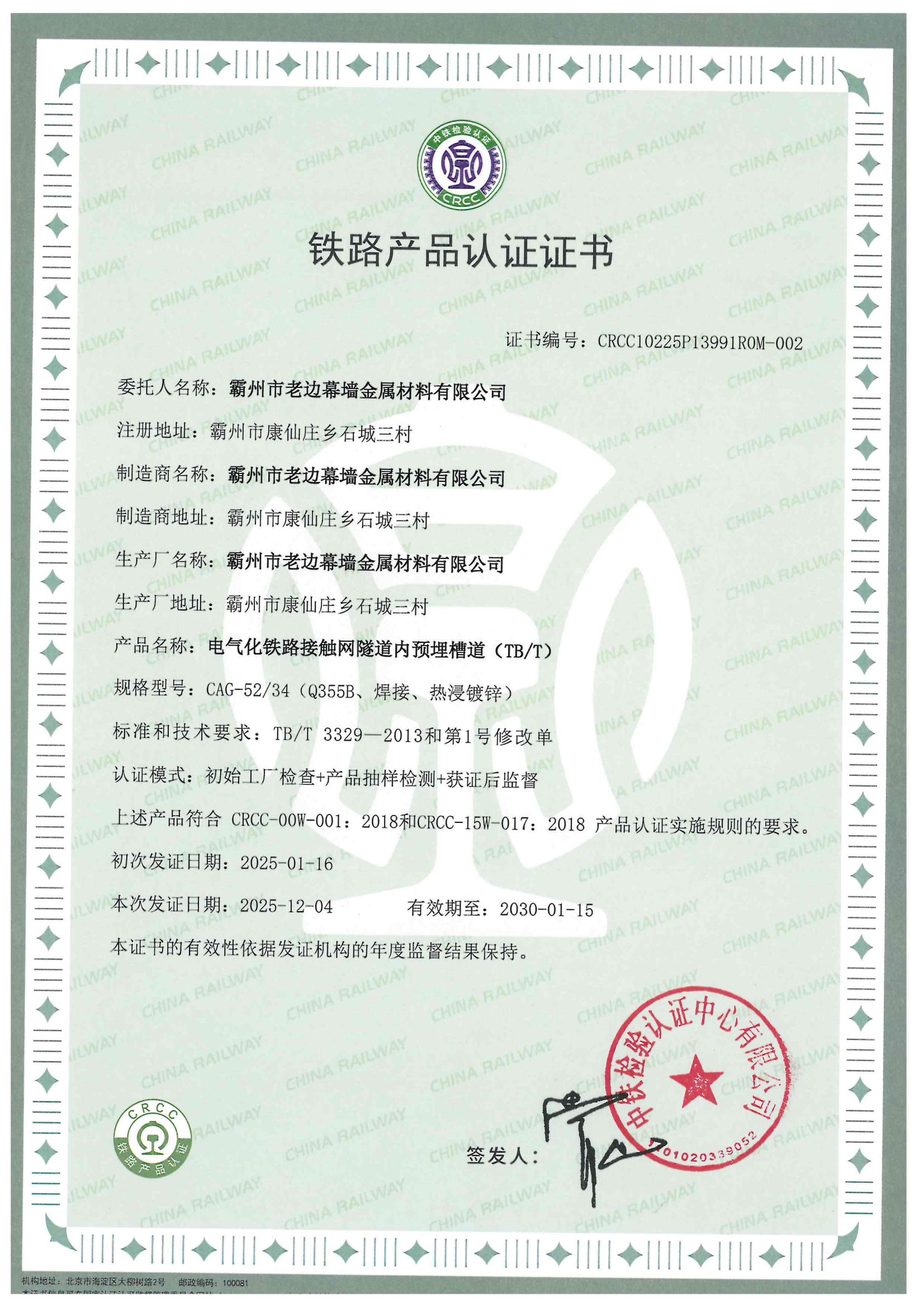 铁路产品认证证书01